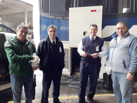Enquanto o presidente Irineu Miritz da Silva, o assessor da direção José Ivori Lima e Daniel Carneiro foram a Rio Grande, tratar de assuntos urgentes da categoria, Arlindo Martins, diretor de patrimônio, e Jurandir Santos, diretor administrativo, representaram a direção nas felicitações aos motoristas da rodoviária mais movimentada do Estado.
