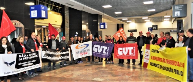 EM ATO NO AEROPORTO DE PORTO ALEGRE, CUT CENTRAIS PRESSIONAM DEPUTADOS CONTRA REFORMA DA PREVIDÊNCIA