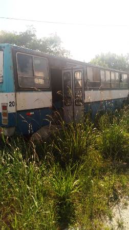 Na verdade, nem alojamento existe. O que tem lá é um velho ônibus improvisado de motor home, caindo aos pedaços, no meio de um charco infestado de mosquitos. Mais parece um cortiço, com banheiro, refeitório, camas, além de materiais de oficina, tudo em péssimas condições dentro do coletivo.